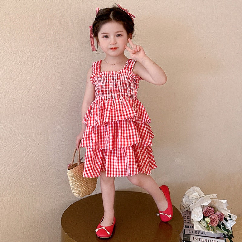 - [수입] 레드체크캉캉원피스 (바로배송)