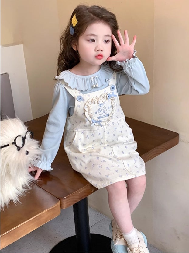 [수입] 블루잔꽃멜빵원피스세트 (바로배송)