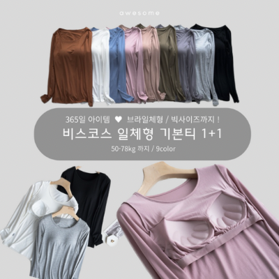 [수입] 비스코스 일체형 기본티 1+1 (-12/15마감)