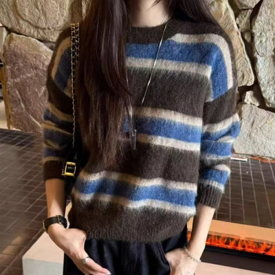 on.[NT684]스트라이프라운드넥니트